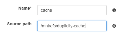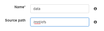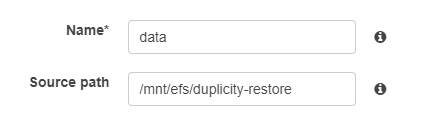 Add a volume for the restore directory and call it data. Here we use /mnt/efs/duplicity-restore