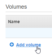 Scroll down to Volumes (skip the other settings for now, we’ll come back to them) and click Add Volume