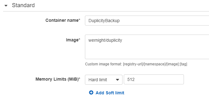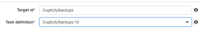 Create a task definition as above and give it a name (eg DuplicityRestore)