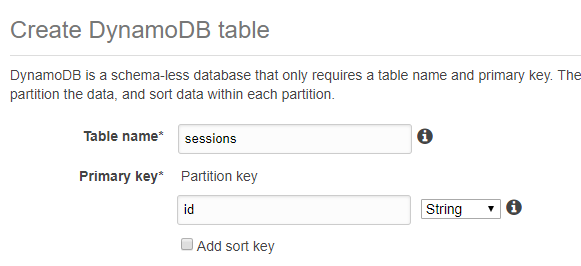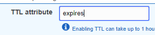 - Once the table is created enable TTL. Note the AWS docs don't tell you to do this (we've opened a github pull request suggesting doc updates about this) but it's a good idea even with the official SDK session handler. Otherwise you'd need to garbage collect sessions which consumes read/write capacity and slows things down (and costs)