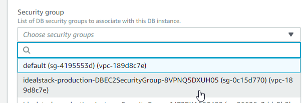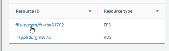 If you have multiple stacks, it may be hard to find the resource ids - you can get these from the Stack Layout under the Status tab for your stack in Idealstack. Clicking the RDS and EFS icons in this layout will take you to these resources in AWS