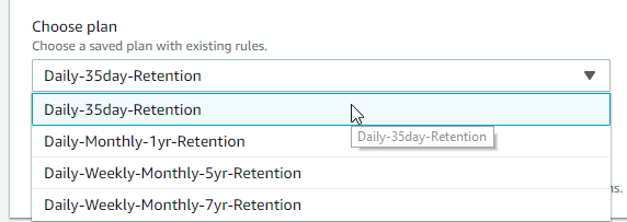 On the next screen you are asked to choose the times and retention policies for your backups. It’s easiest to start from AWS’s examples