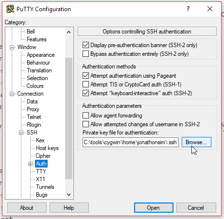 - Under Connection > Auth > SSH in the config tree on the left, select your