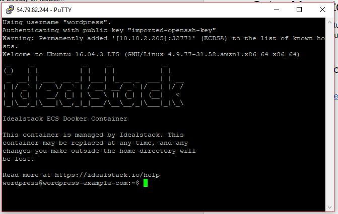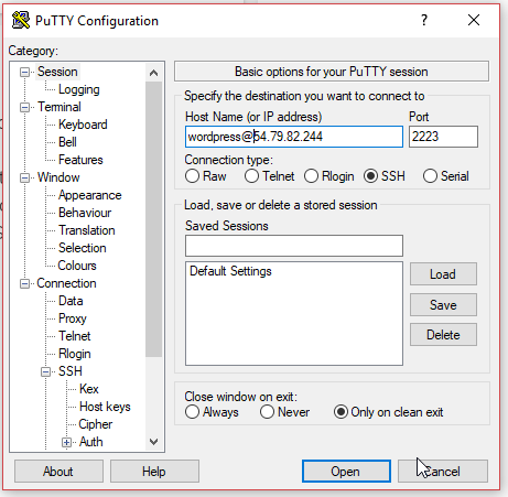 idealstack in the format user@host (eg wordpress@54.79.82.255) and paste the Port