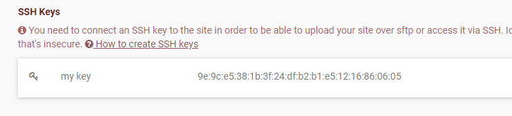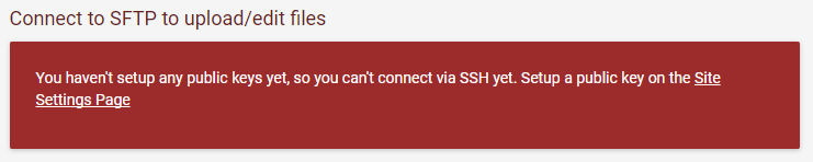 - Click on the site you want to connect to : on the settings tab ensure you have an SSH key. If you