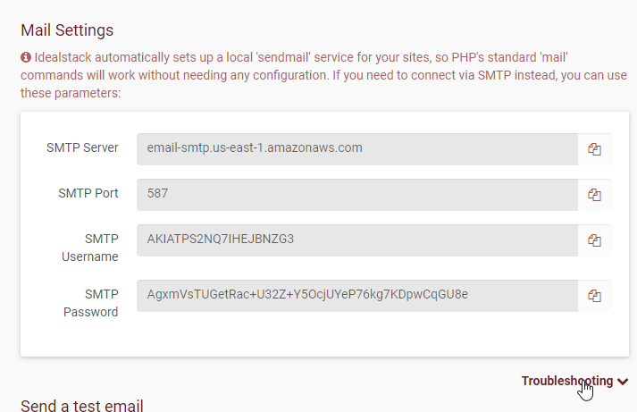 Idealstack can configure your hosting to send emails through the AWS Simple Email Service (SES). SES provides a high-capacity, reliable email service with high deliverability levels