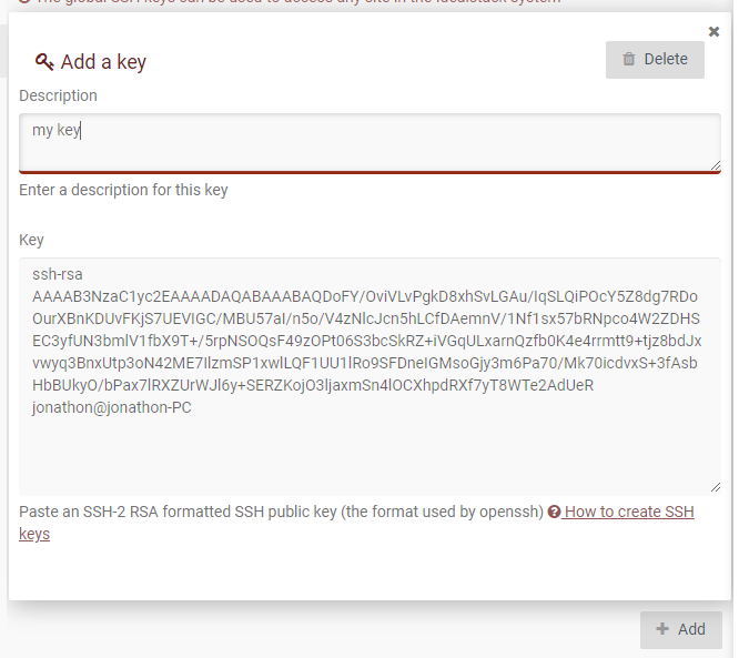 - You can set an SSH key just for a particular site by editing that site, and pasting the key as above
