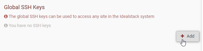 One of the big benefits of the Idealstack hosting platform is that it gives all the benefits of a modern, clustered autoscaling AWS architecture, but still supports standard developer tools such as SSH and SFTP. To use SSH and SFTP you will need to create an SSH key (or upload your existing one).