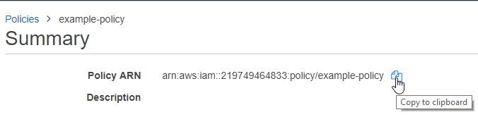 To find the ARN of a policy - in the IAM Policy list click on the policy and paste the ARN from the summary section: