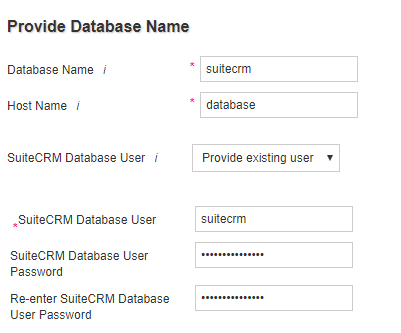 Navigate through the SuiteCRM setup screens accepting the defaults. When asked for the database details use the name of your RDS instance for the hostname, and the username/password you created in step 6.