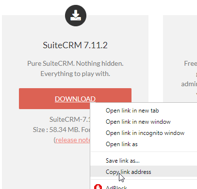 #Replace this url with the one you copied and pasted wget https://suitecrm.com/files/162/SuiteCRM-7.11/384/SuiteCRM-7.11.2.zip -o suitecrm.tar.gz unzip suitecrm.zip mv SuiteCRM/* public_html/ rmdir SuiteCRM*/ rm suitecrm.zip