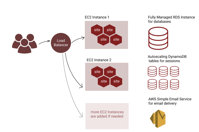 - Fault tolerant, high availability hosting - automatically failover, add and remove instances as needed, start small and scale as big as you need
