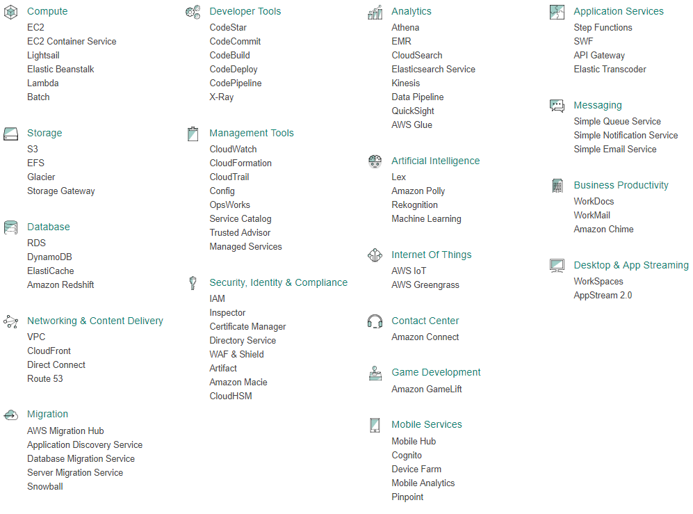 There's many many more, that's the point - you have absolute freedom to develop new services and solutions out of AWS tools, something you can never get on any other type of hosting. This is our real killer feature - no-one can match it!